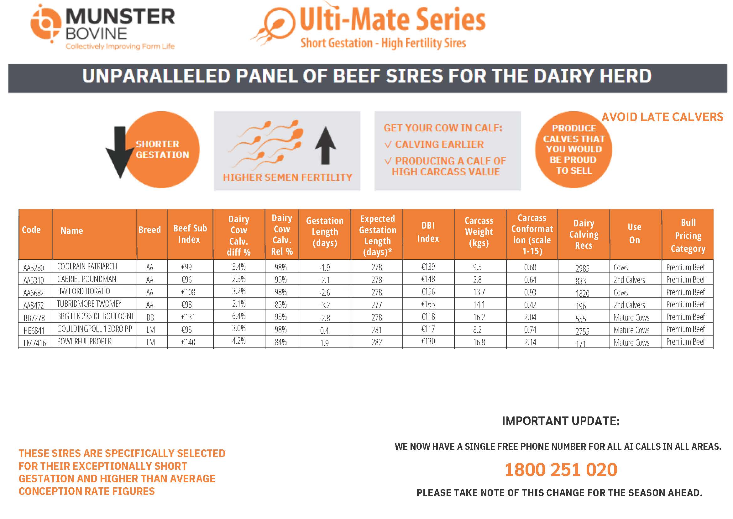Check out our Munster Bovine catalogues which contain the most comprehensive listing of Ireland’s top performing sires for Dairy, High Type Dairy, Beef for Dairy and Beef for Suckler herds.