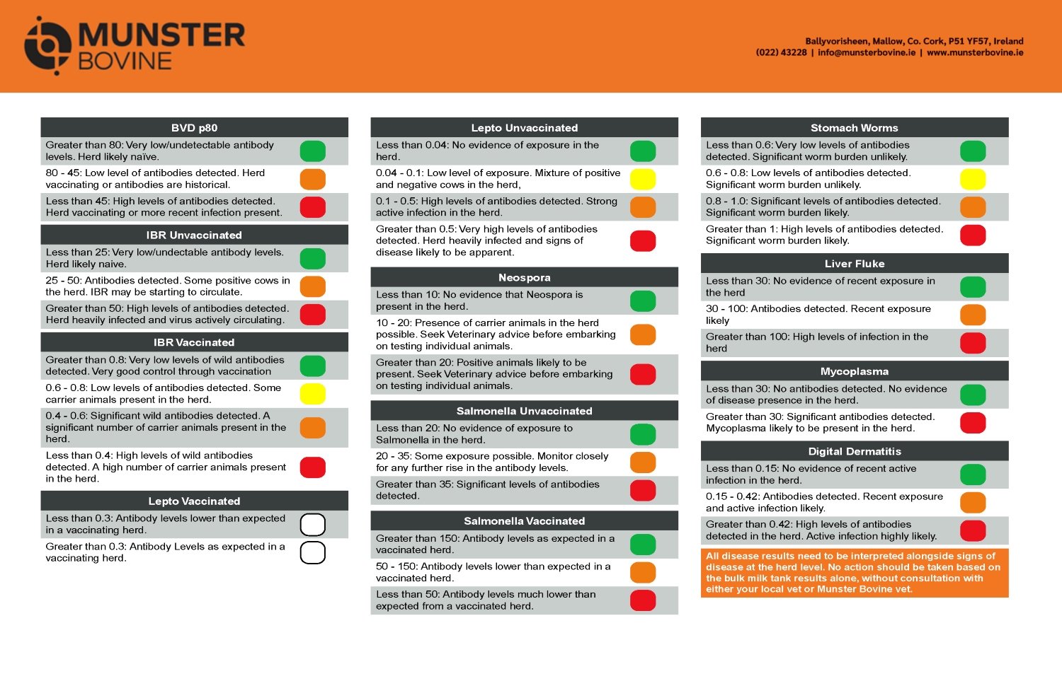 1. After each round of testing, the results are posted to the herd owner and/or made available on FarmOps (Munster Bovine’s Mobile Application) Alternatively, if the herd owner is participating in either the Gold or Silver programme results can be emailed to their own vet if requested (FOC).