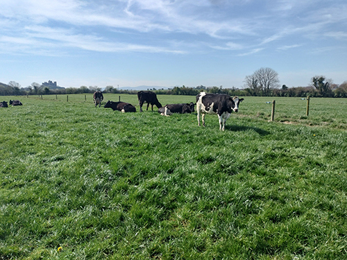 Cows in Michael Ryan’s herd with the Rock of Cashel in the background.